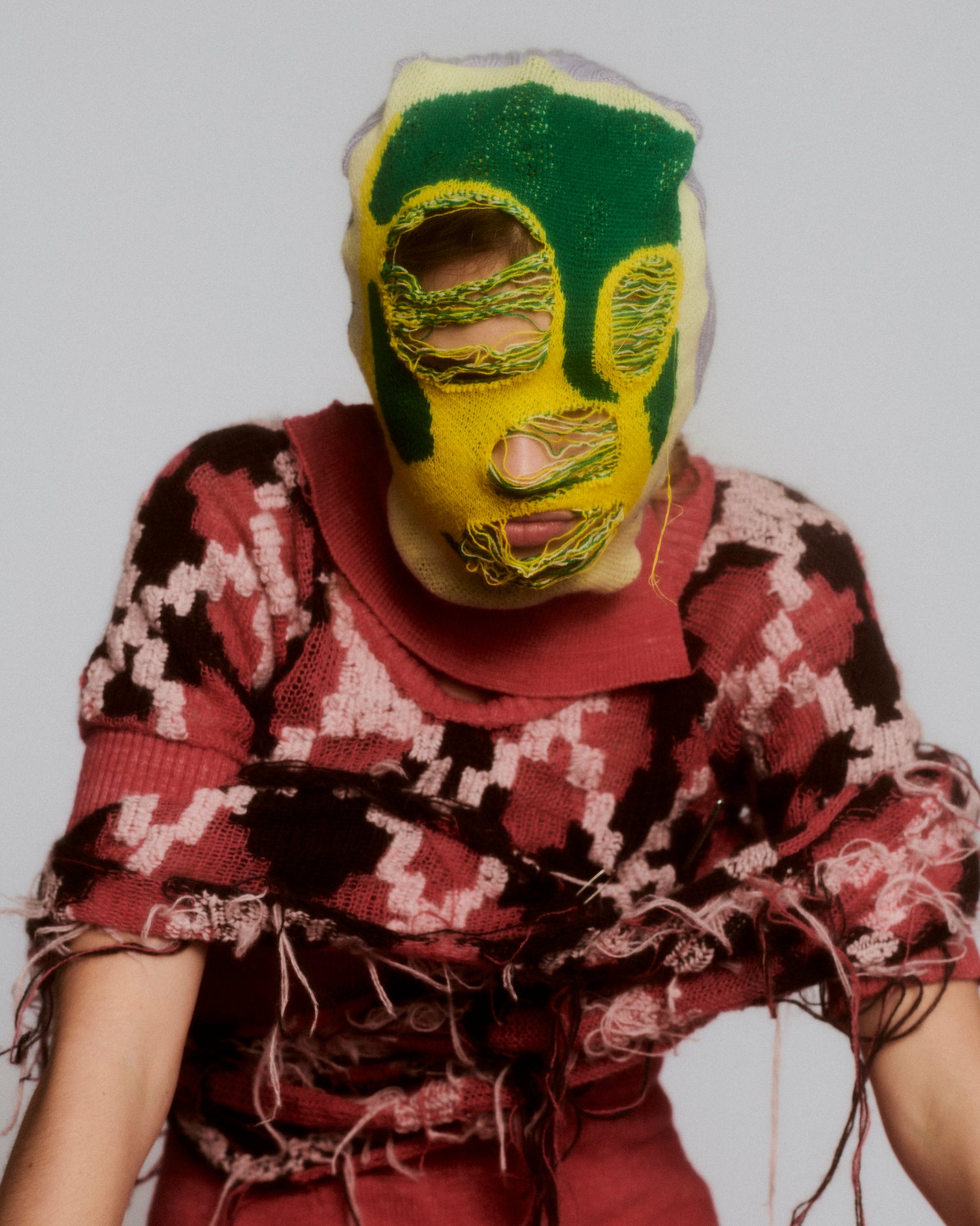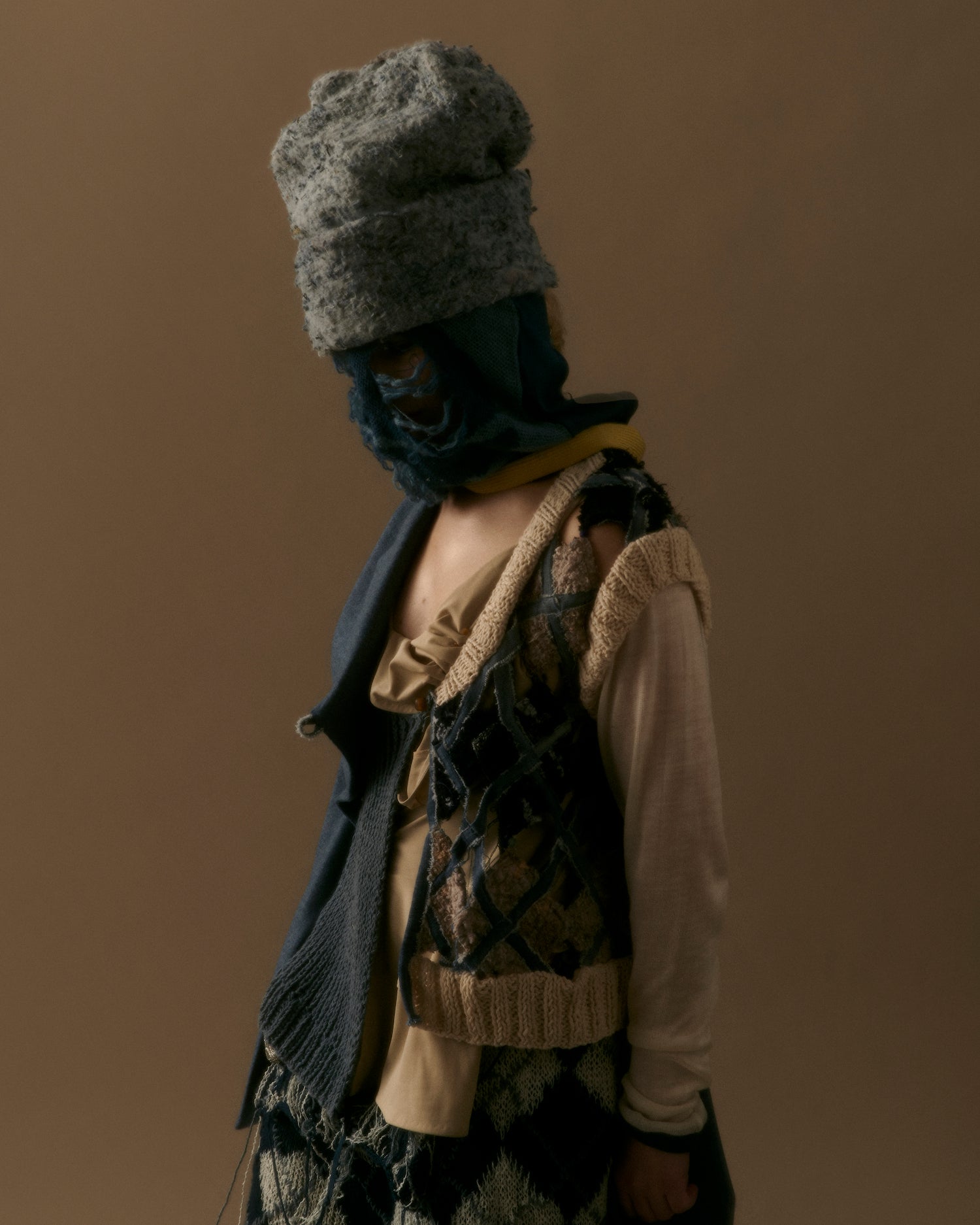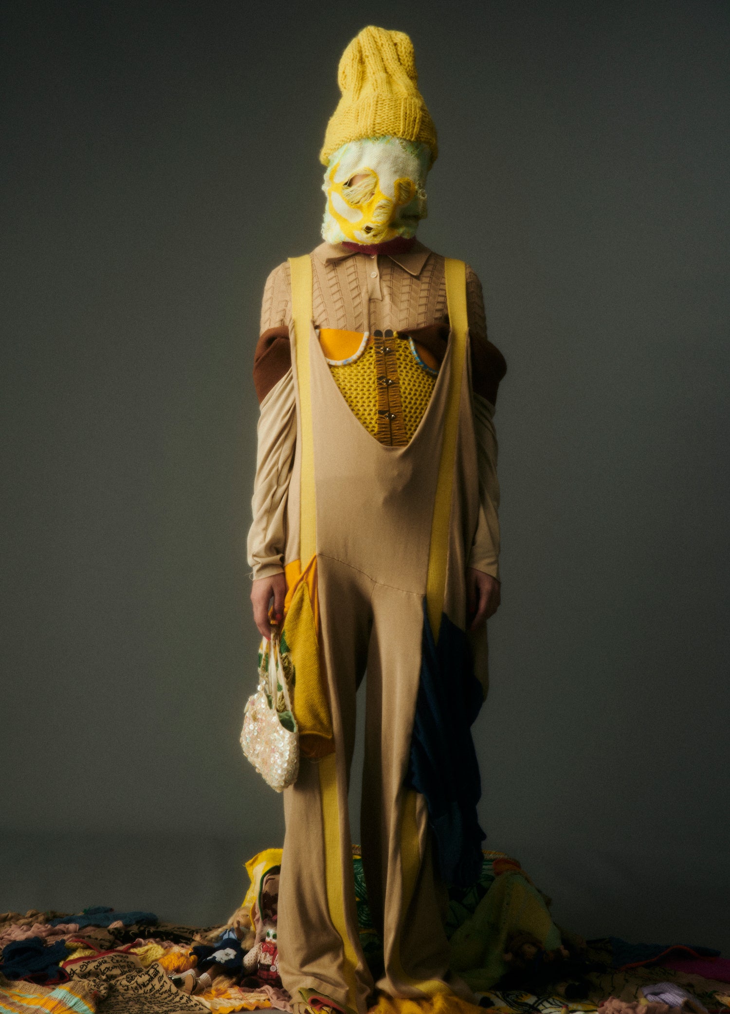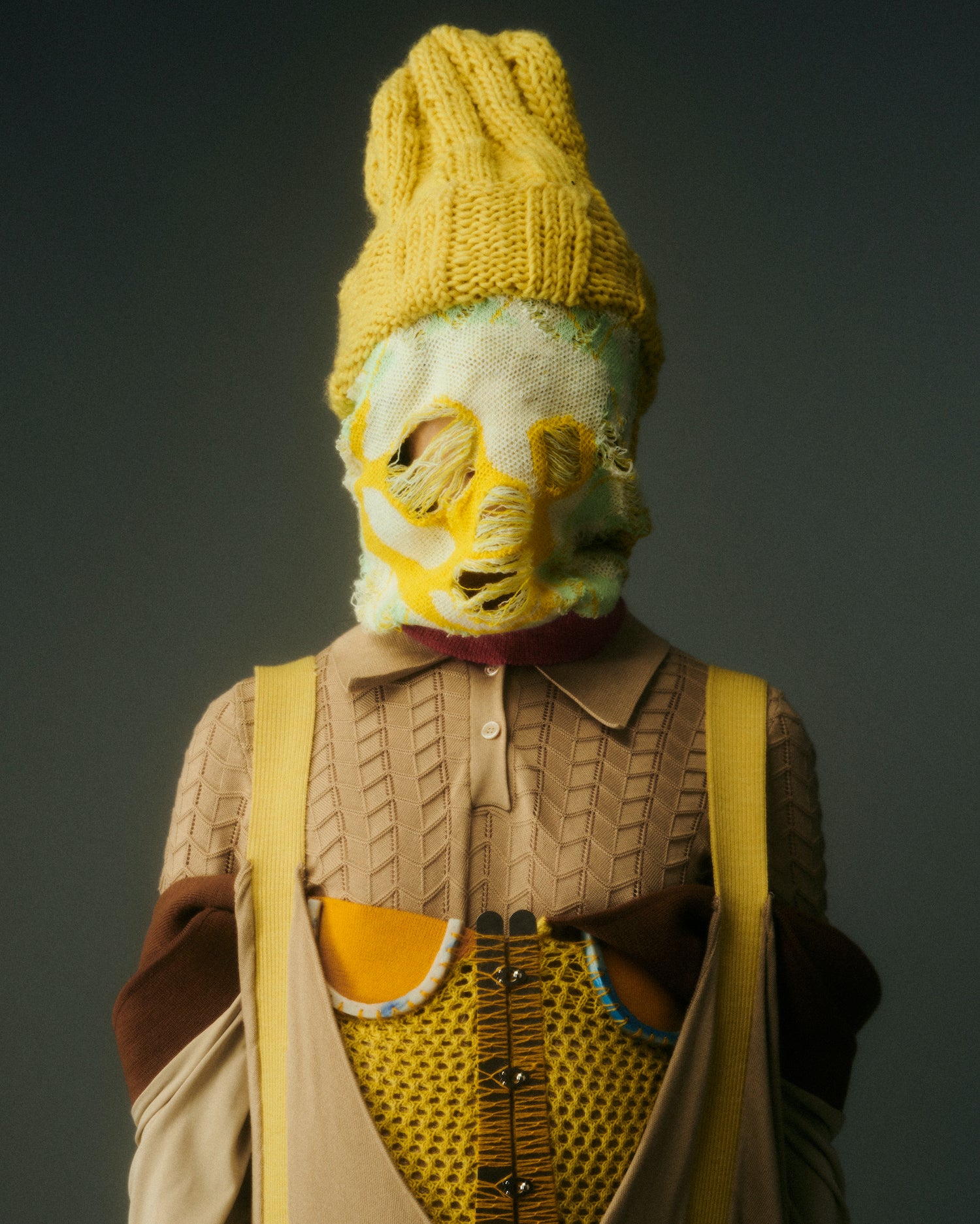 Duplicitous Lives for AW20 by Olivia Rubens explores what it means to be a woman, and how we construct ourselves bit by bit to become who we are or who we think we are. It questions the reality of our “true” selves, sameness, and our perception of others, and humorously points towards the metaphorical and literal masks we wear to conceal our identities on a daily basis. Through sustainable knitwear design and social justice initiatives, Olivia Rubens stands for overcoming and embracing our differences, and battling the injustices of bullying and prejudice.