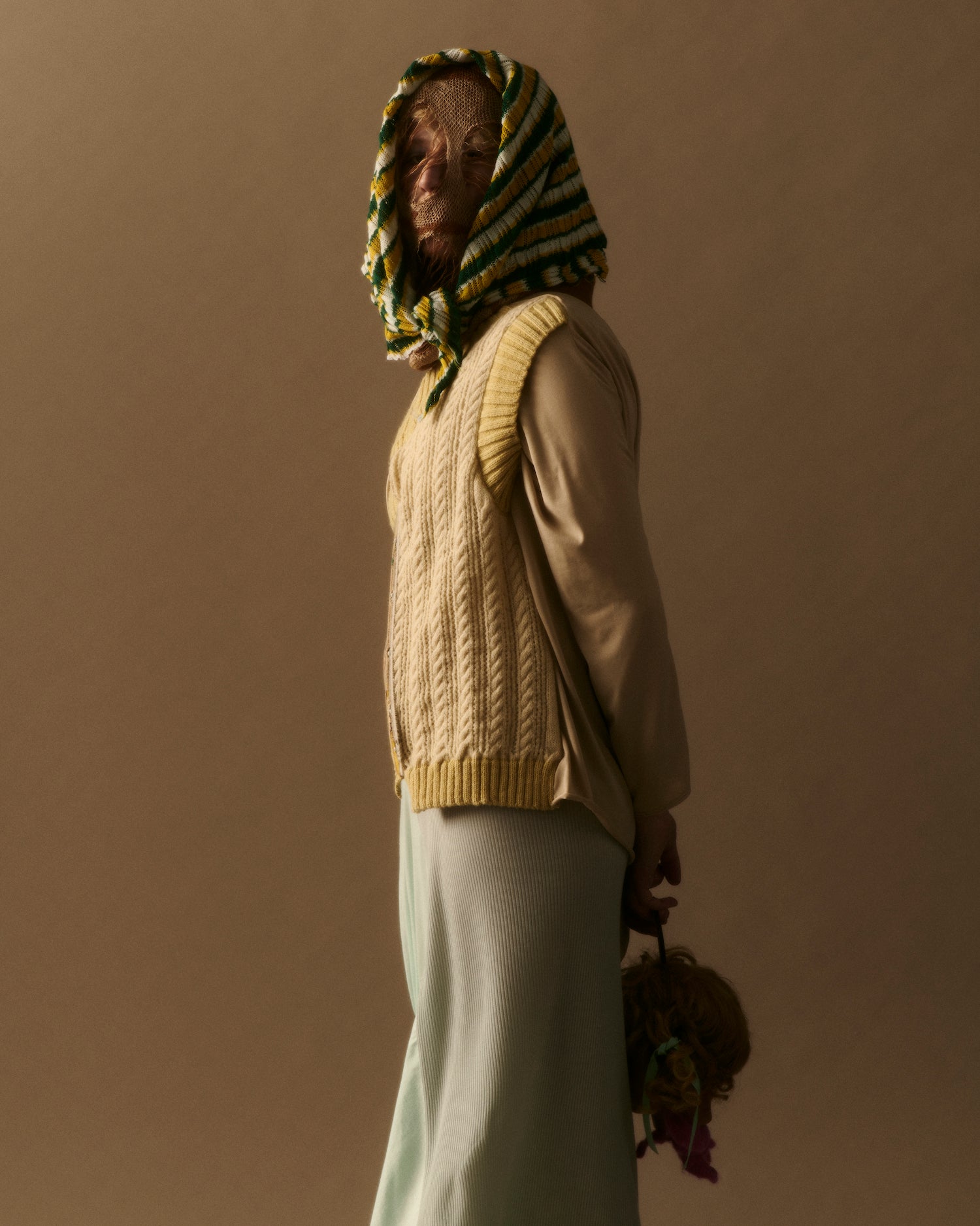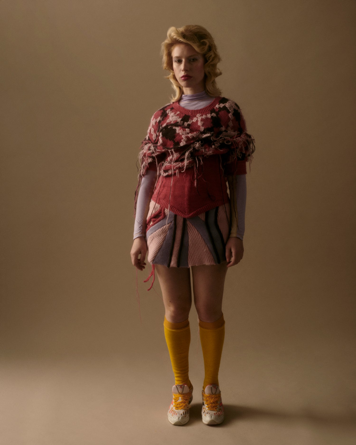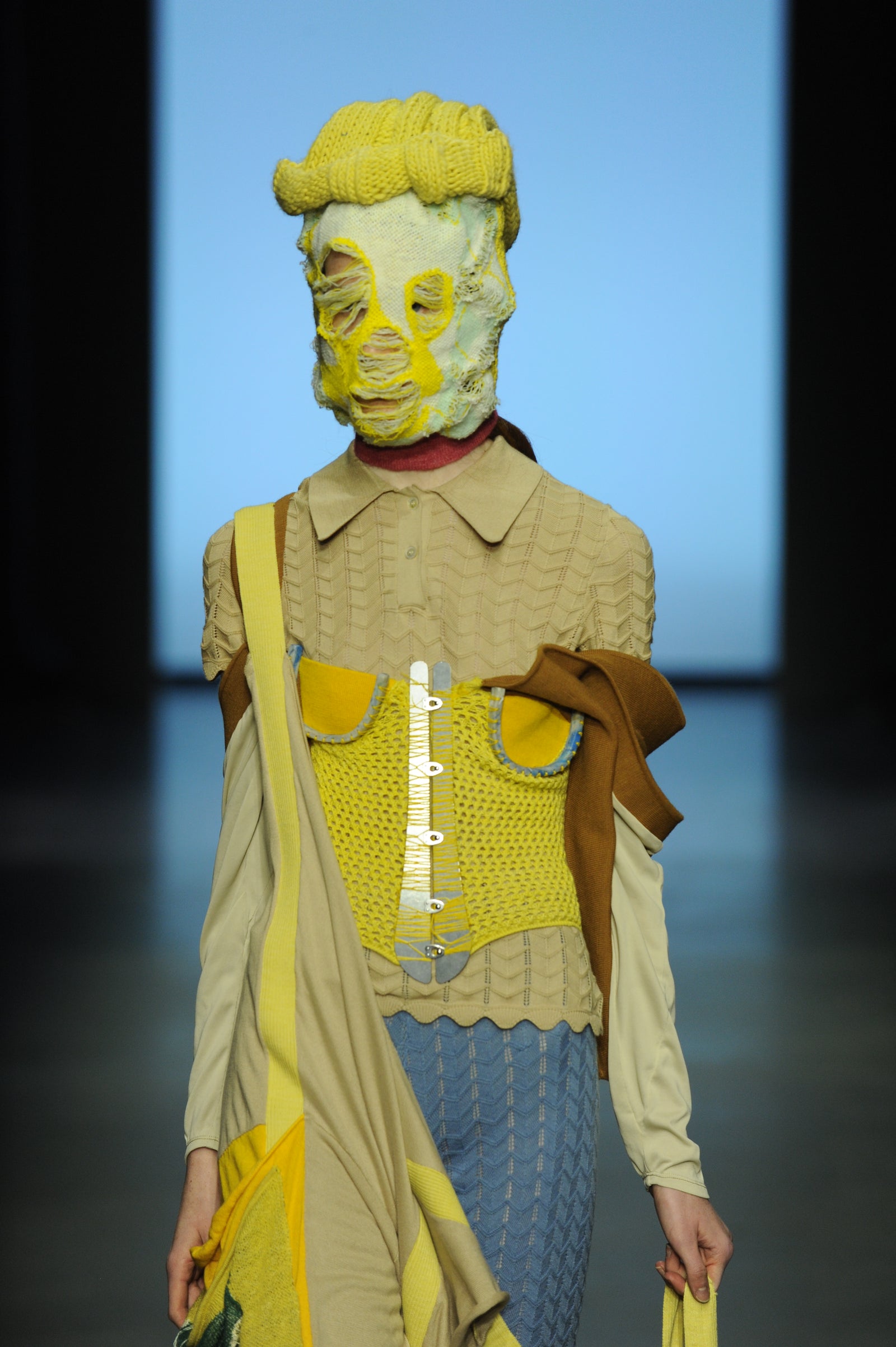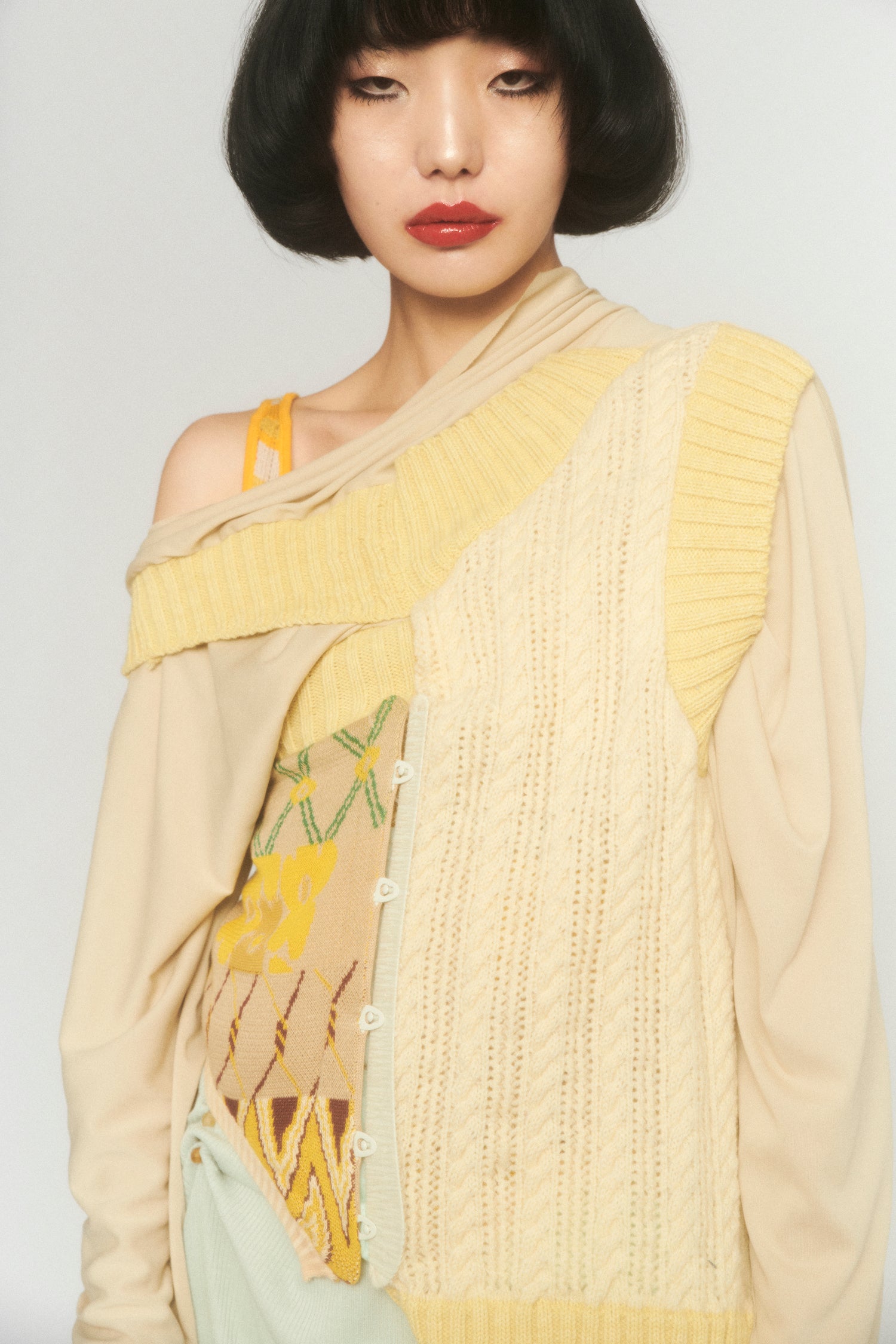 Duplicitous Lives for AW20 by Olivia Rubens explores what it means to be a woman, and how we construct ourselves bit by bit to become who we are or who we think we are. It questions the reality of our “true” selves, sameness, and our perception of others, and humorously points towards the metaphorical and literal masks we wear to conceal our identities on a daily basis. Through sustainable knitwear design and social justice initiatives, Olivia Rubens stands for overcoming and embracing our differences, and battling the injustices of bullying and prejudice.