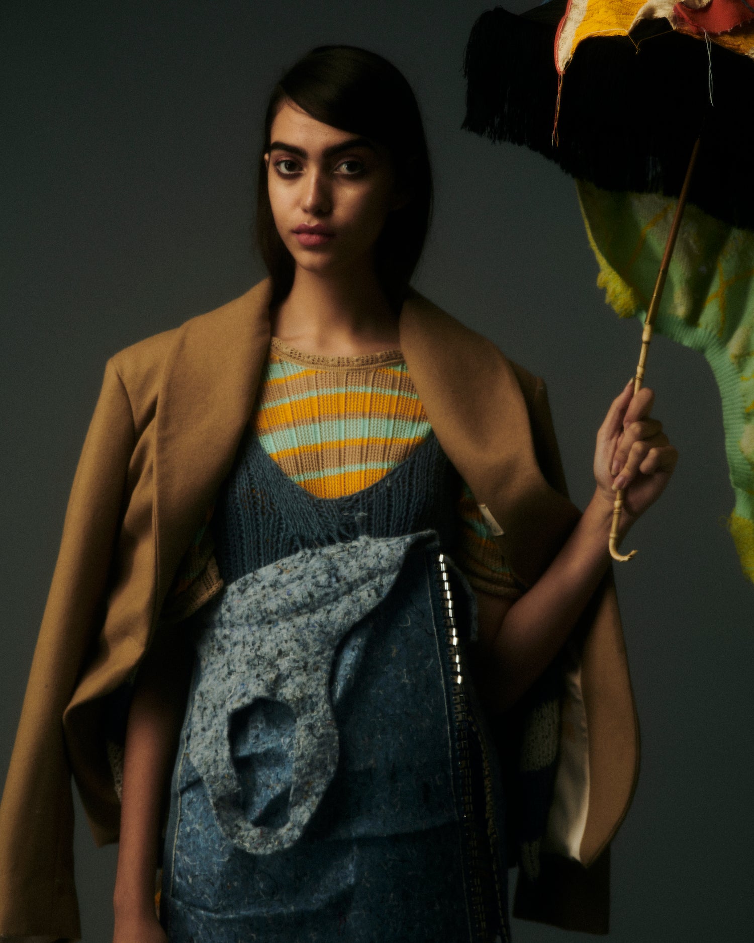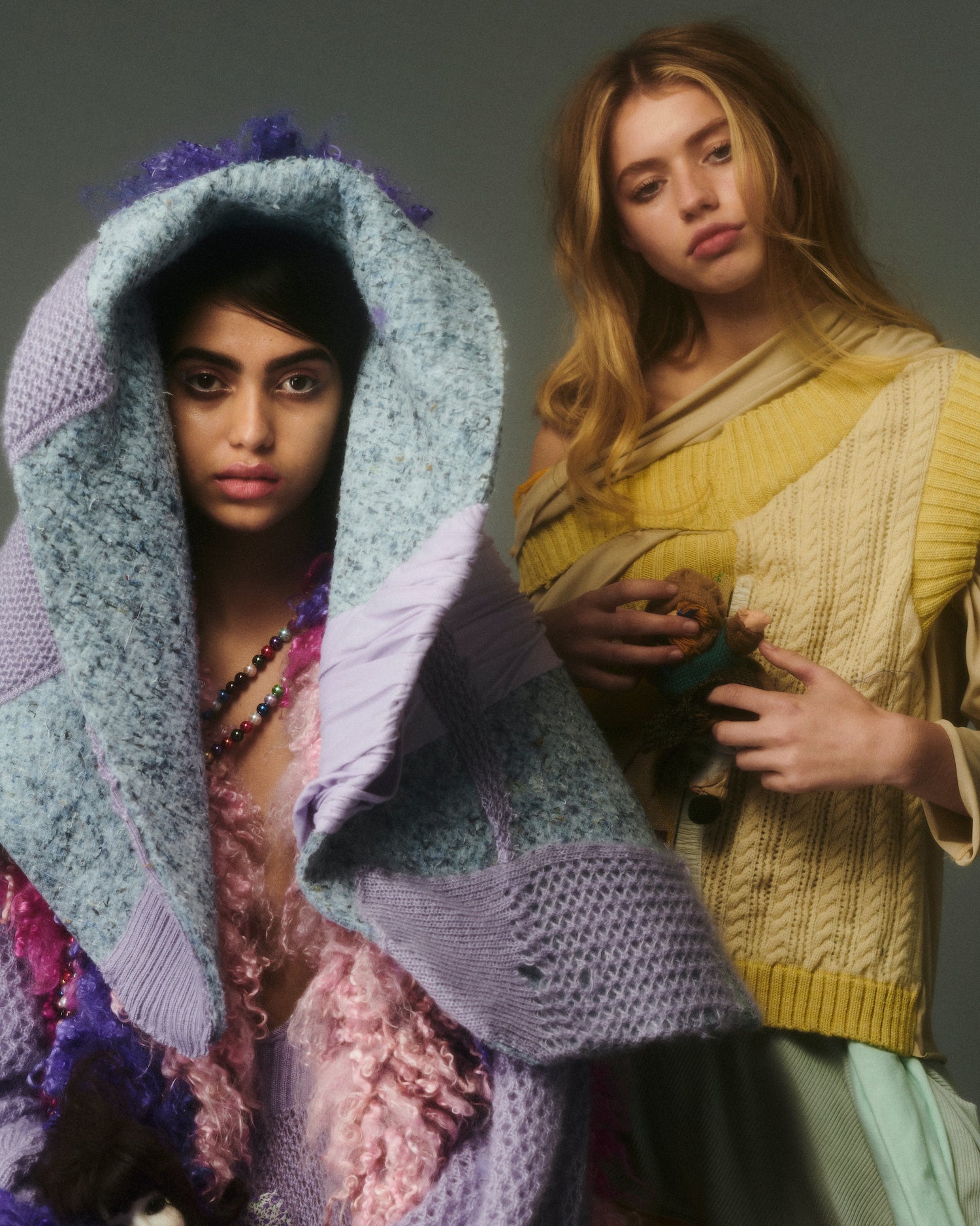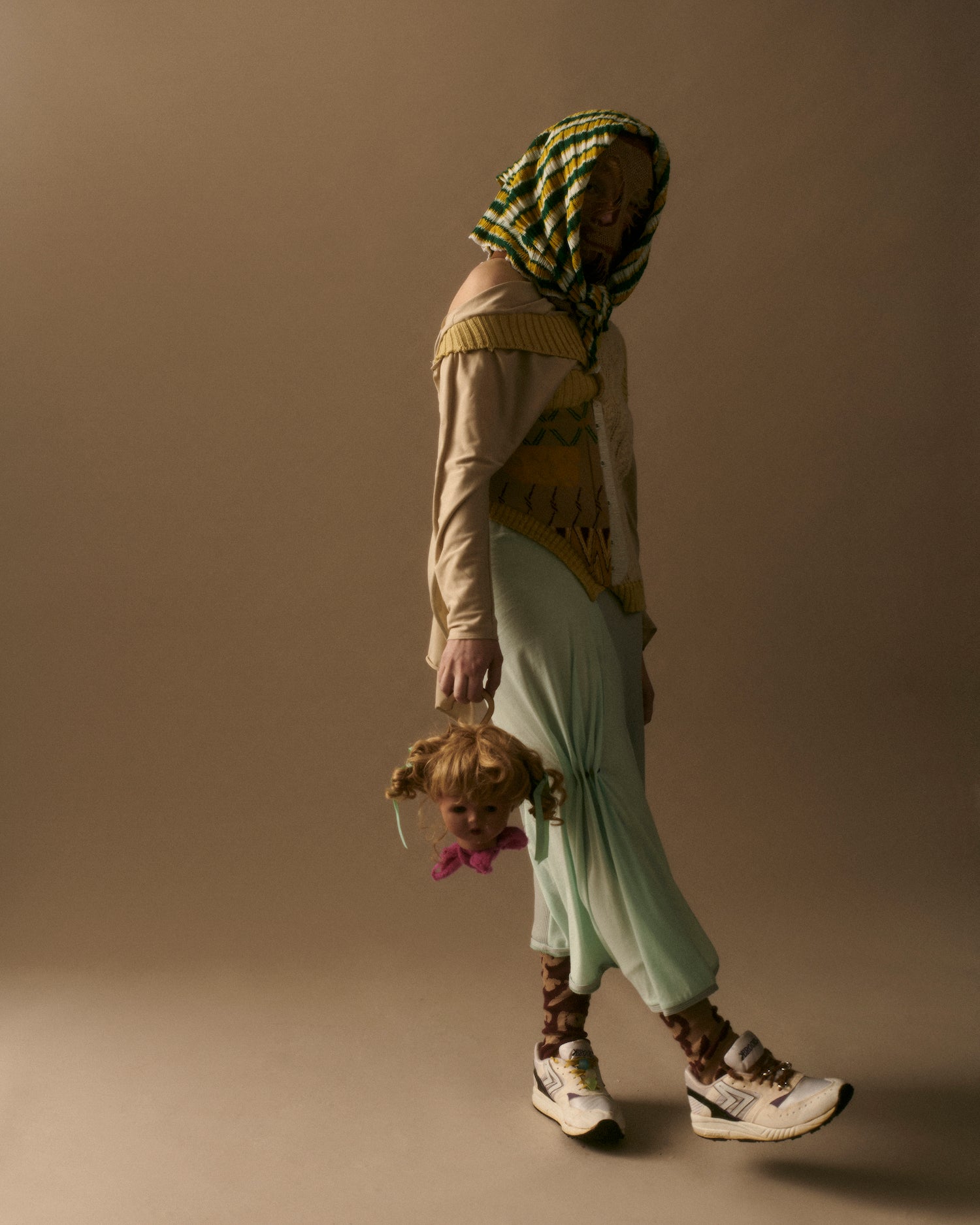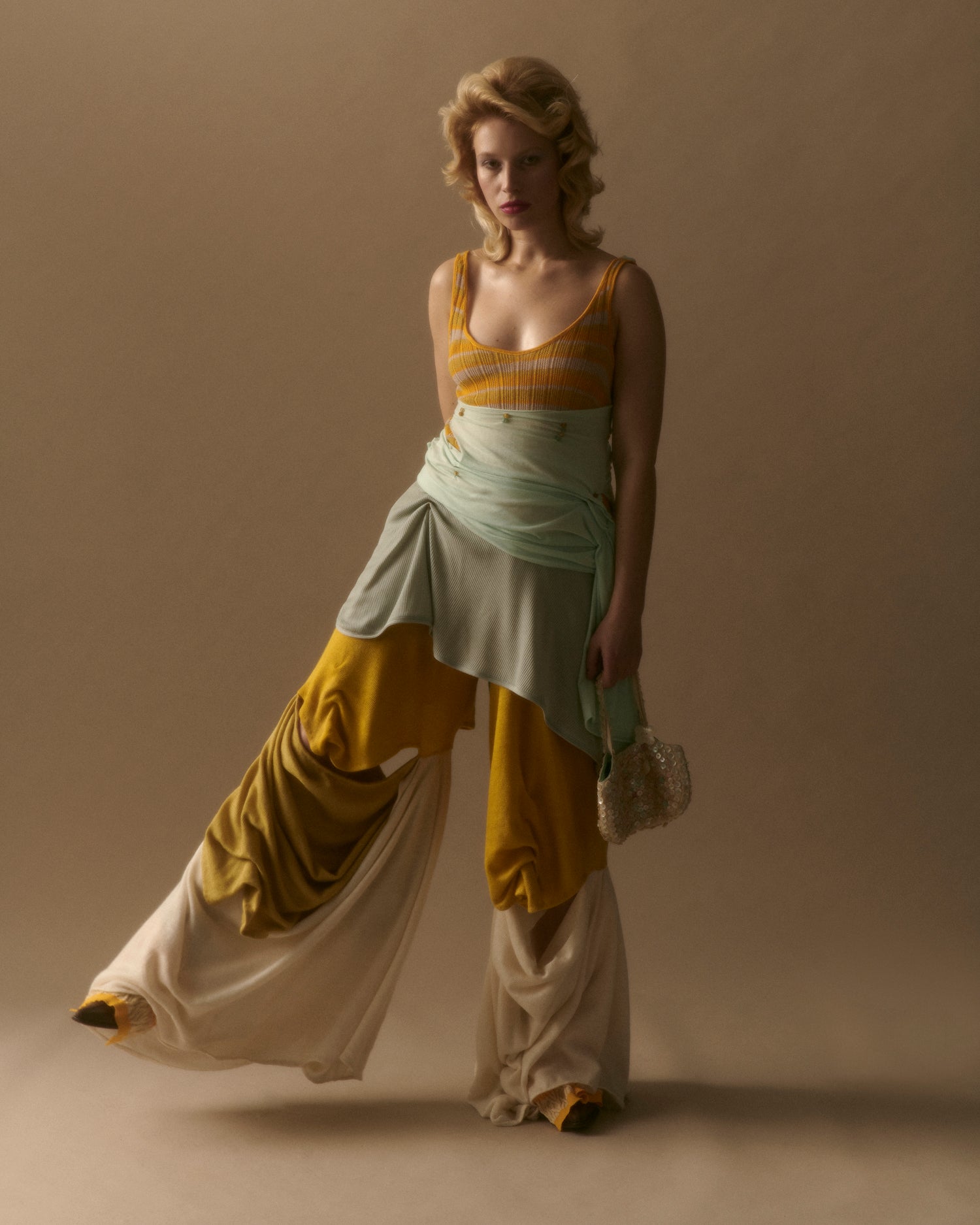 Duplicitous Lives for AW20 by Olivia Rubens explores what it means to be a woman, and how we construct ourselves bit by bit to become who we are or who we think we are. It questions the reality of our “true” selves, sameness, and our perception of others, and humorously points towards the metaphorical and literal masks we wear to conceal our identities on a daily basis. Through sustainable knitwear design and social justice initiatives, Olivia Rubens stands for overcoming and embracing our differences, and battling the injustices of bullying and prejudice.