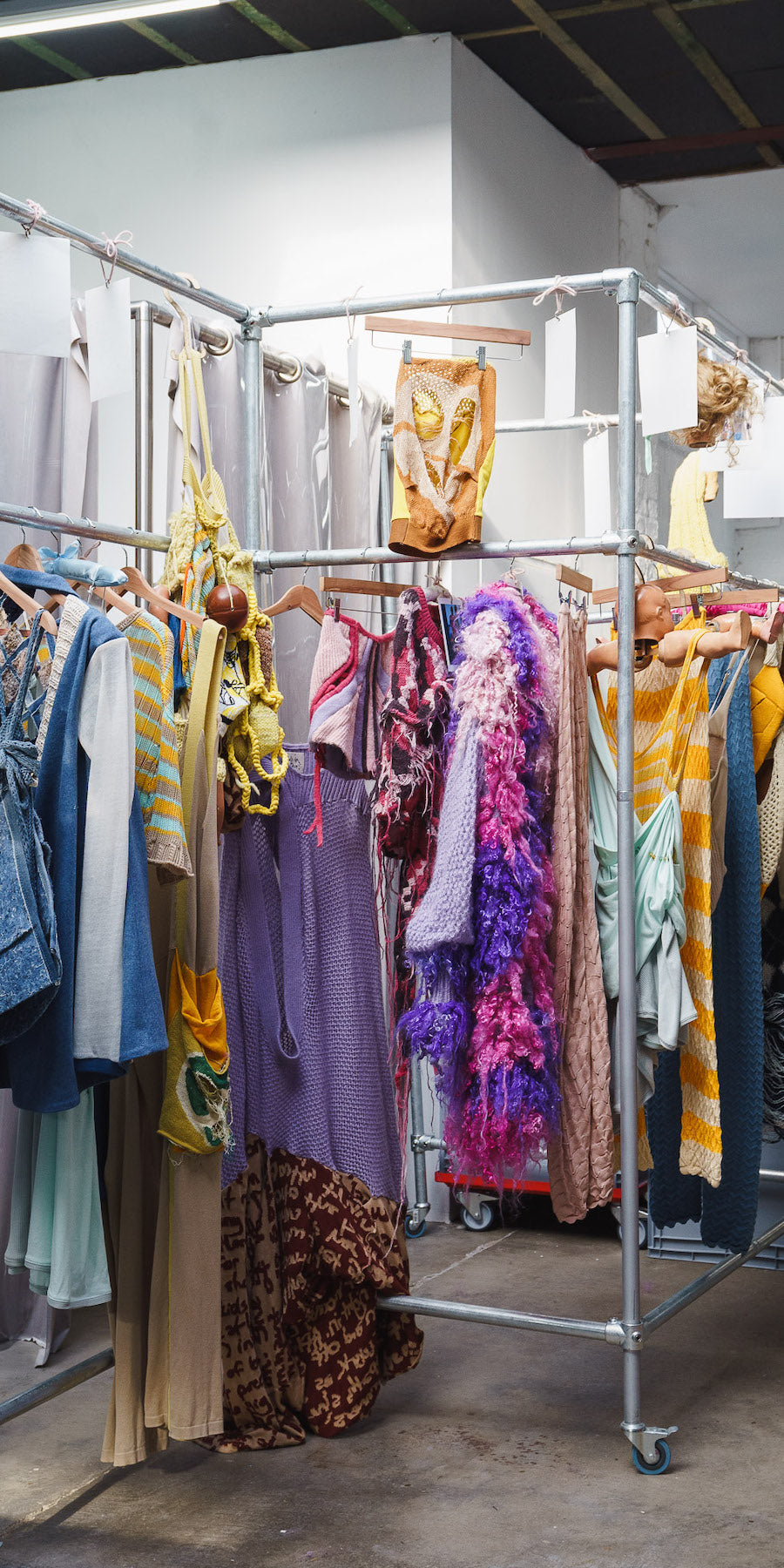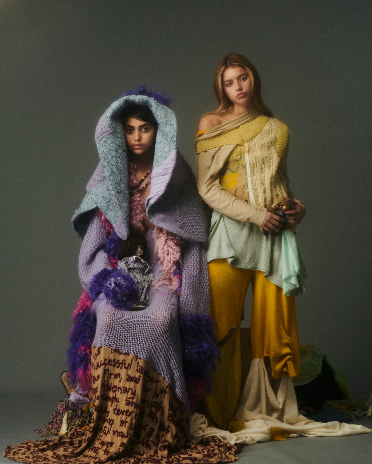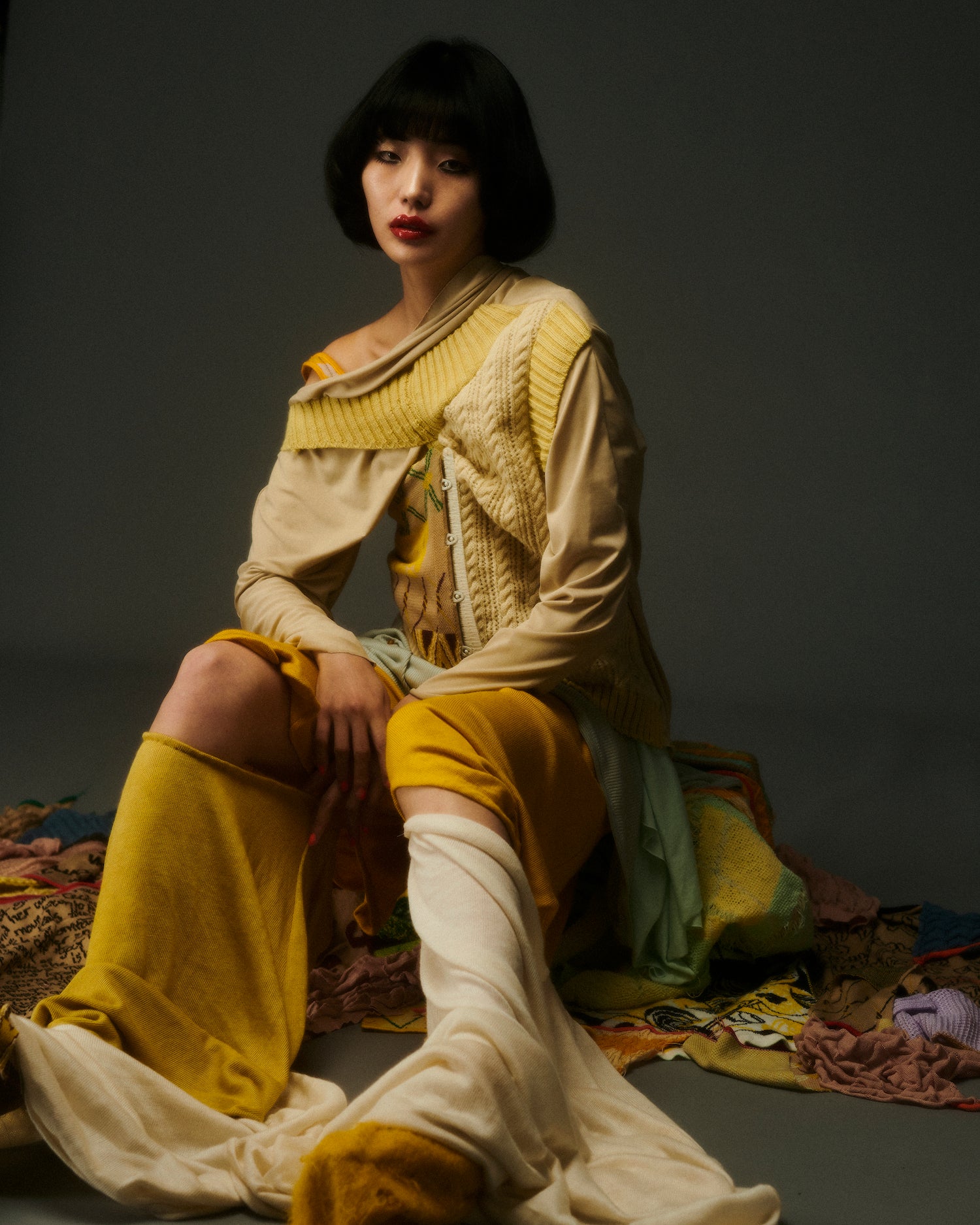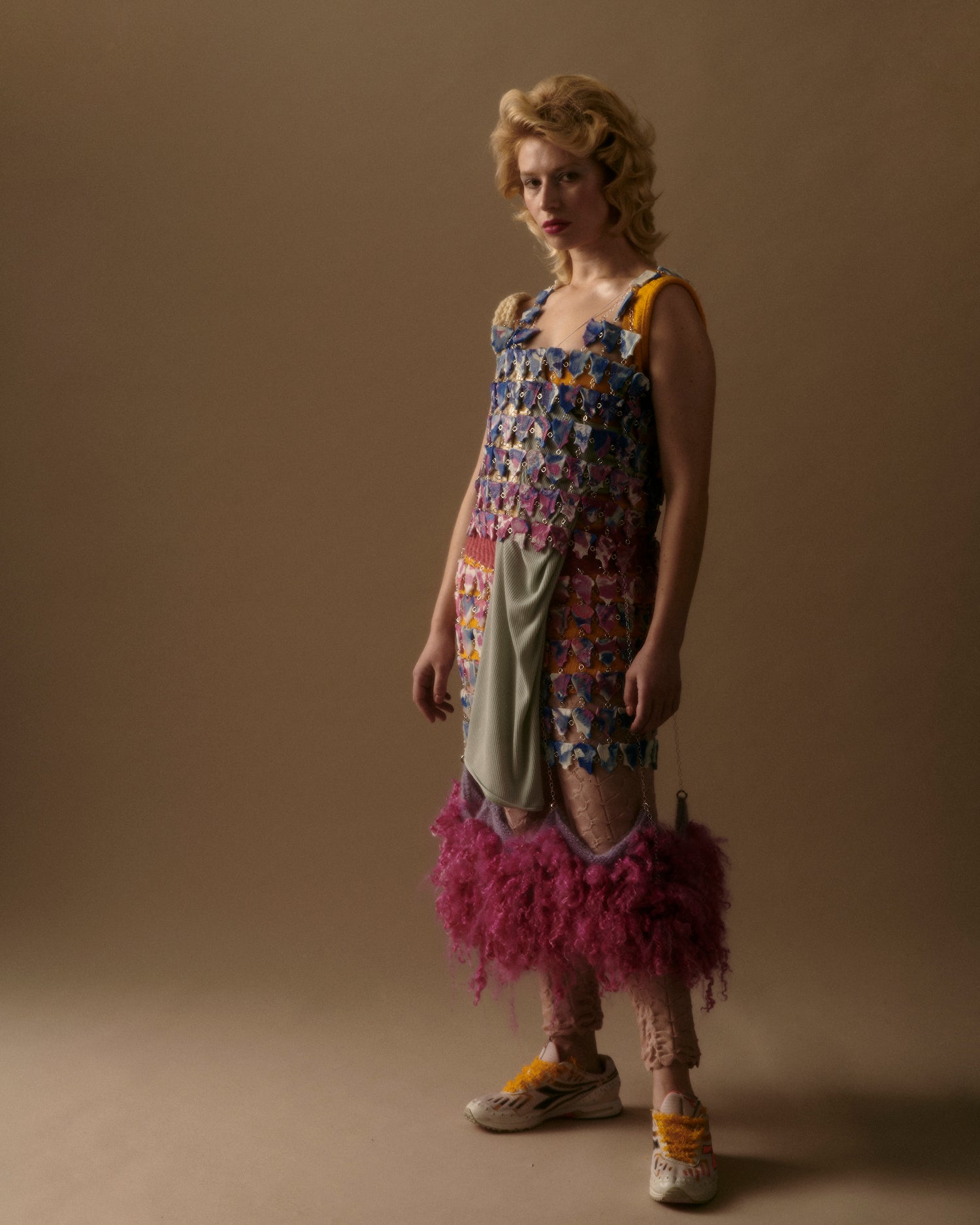 Duplicitous Lives for AW20 by Olivia Rubens explores what it means to be a woman, and how we construct ourselves bit by bit to become who we are or who we think we are. It questions the reality of our “true” selves, sameness, and our perception of others, and humorously points towards the metaphorical and literal masks we wear to conceal our identities on a daily basis. Through sustainable knitwear design and social justice initiatives, Olivia Rubens stands for overcoming and embracing our differences, and battling the injustices of bullying and prejudice.