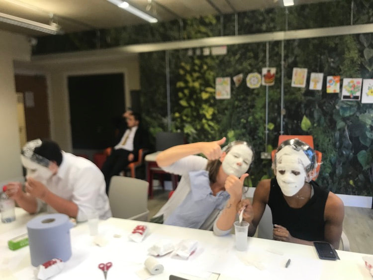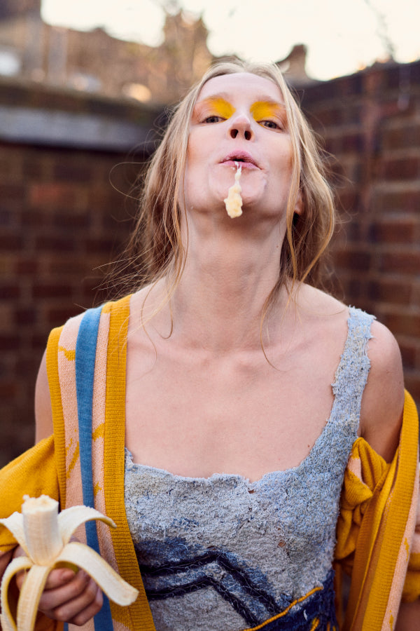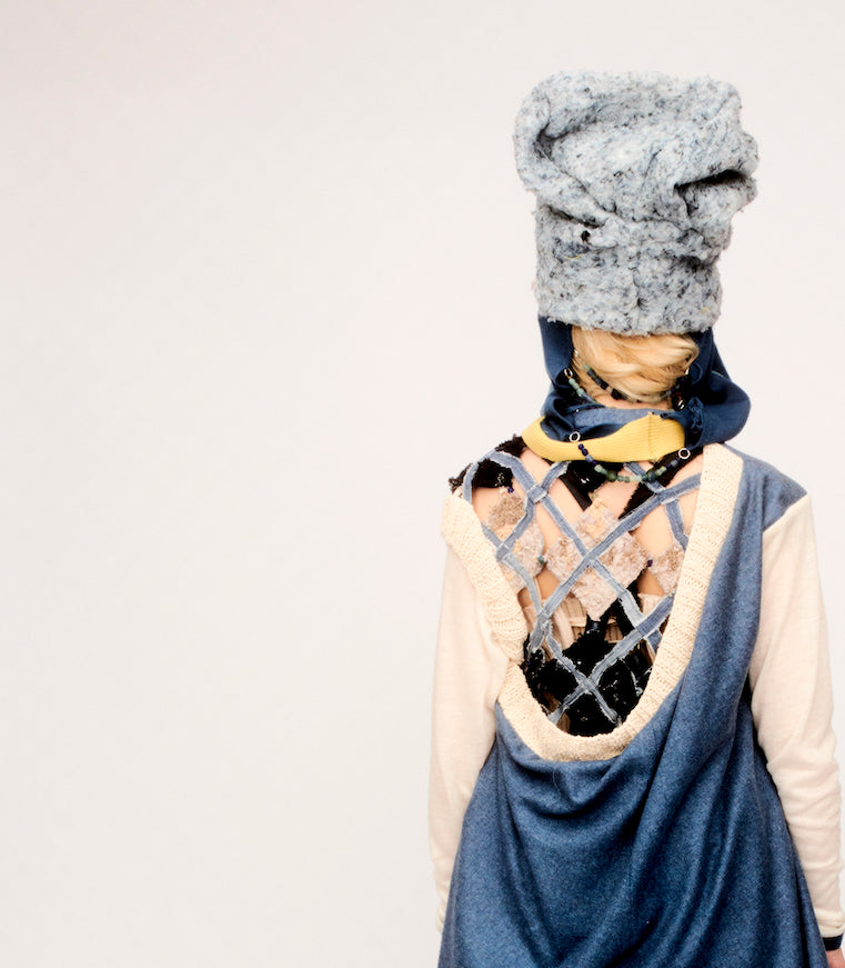 For the AW20 collection, Duplicitous Lives, Olivia Rubens designed and ran a 3-week youth workshop through their community centre, the Reed, centered around cyber bullying and identity expression, which contributed to her collection and Master's thesis. Through this workshop, they created "identity masks", analyzing what made them who they are and what means the most to their identities, and creating artwork that supported this and questioned their values, as well as allowed them to create affirmations. Octavia donated more unsold clothing with which to create new textiles for the AW20 colletion. Through another collaboration with Russell at Offcut Studio, who shredded the garments down, Rubens transformed up-cycled clothing into a beaded argyle seen in the AW20 Phyllis Jacket.
