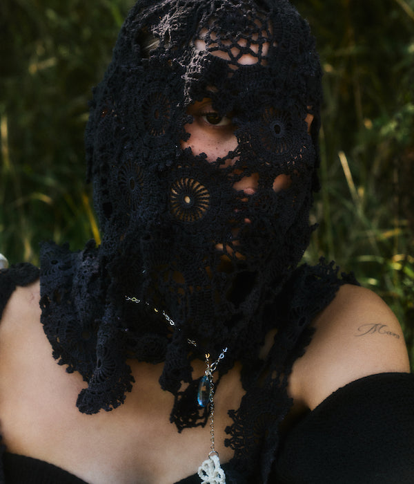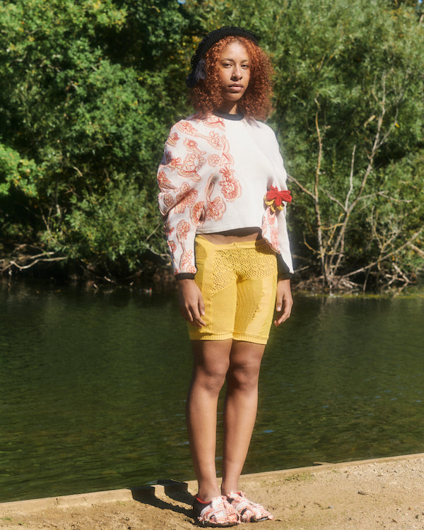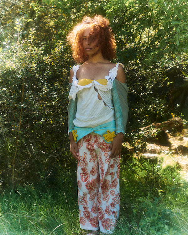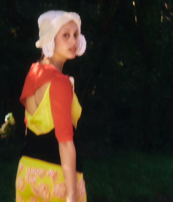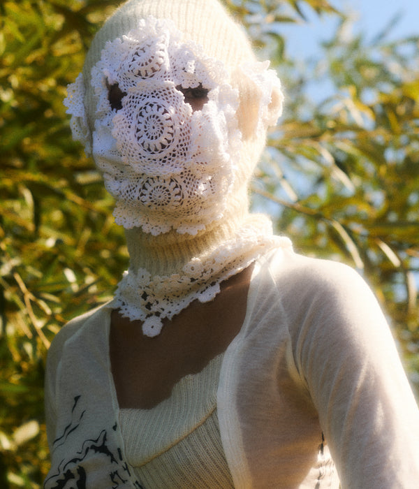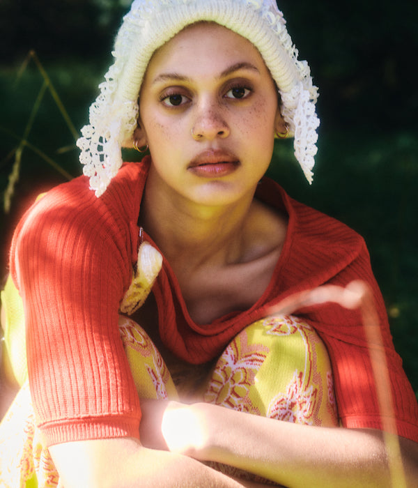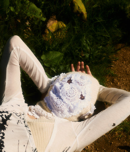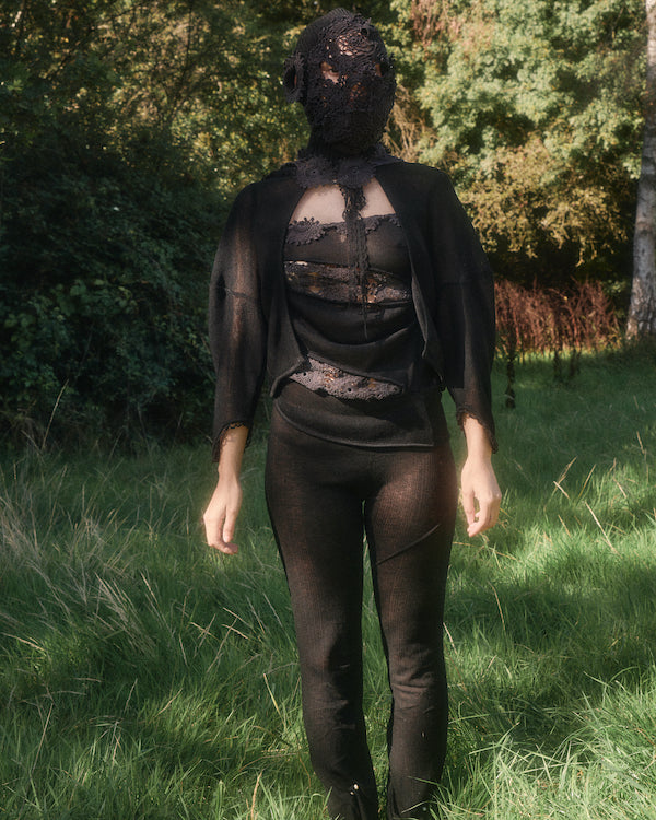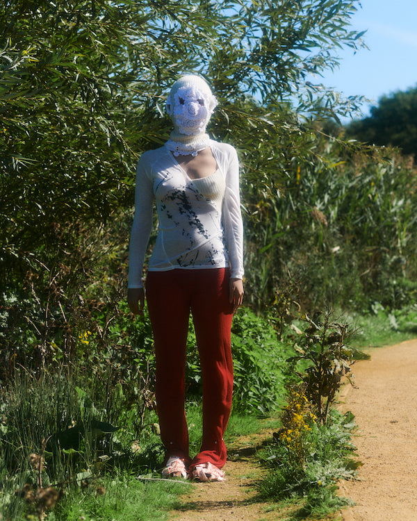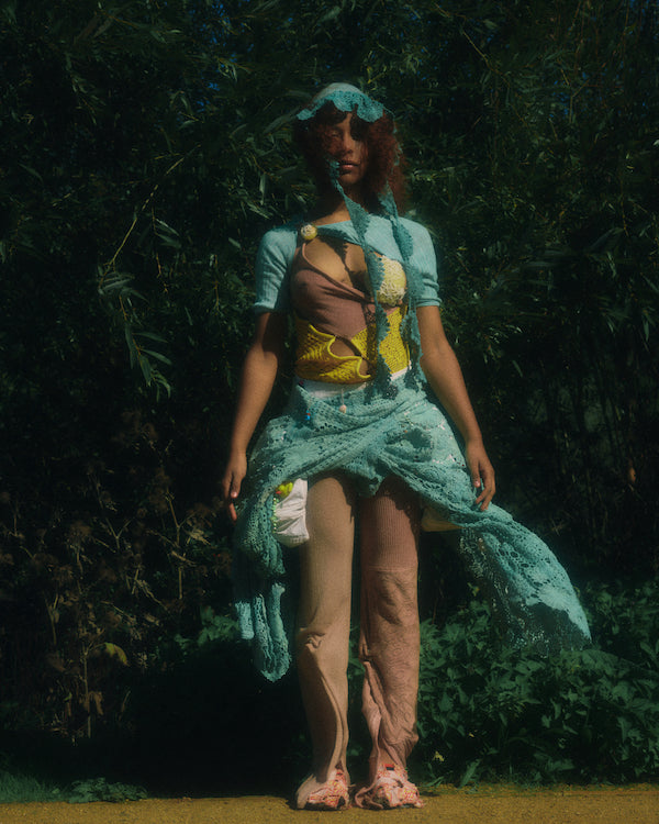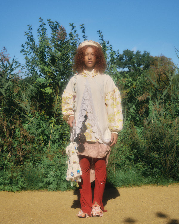 The unapologetic knitwear label looks to 18th century garments and Rococo excess to shine light on the greed and ignorance of the past, echoing the harsh realities of today. Using waste and found objects to piece together a collection, Rubens continues to create clothing that is both planet and people positive. This season introduces a new inspiration of Shakespearean descent that beats at the heart of this collection.